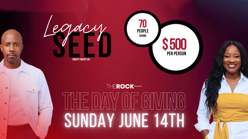 We will be coming together to sow a seed. This seed is not only for the future of The Rock, it's also for the future of each partner's personal legacy! Everybody has the opportunity to sow into their future. Join us!